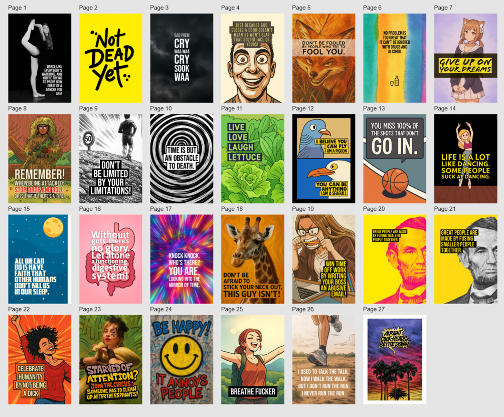 Demotivational Posters (PDF Print File)A$6.22A$6.22https://schema.org/InStockaudRicky Browne - Australian Author, TikToker & YouTuberRicky Browne - Australian Author, TikToker & YouTuberI want this!PDF File24 x A4 PagesSize38.1 MBLength27 pagesAdd to wishlist New wishlistShareShare on XShare on Facebook Copy linkCopy product URL